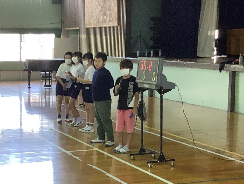 5・6年生の新体力テストの様子です。集中し、緊張感を持って「自分の記録を越えよう」と先生からお話がありました。
