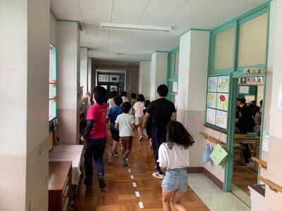 清掃タイムには、「来た時よりもきれいに」を合言葉に、進んで働く姿が見られました。