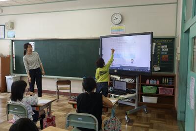 1年生の国語の授業では、子供たちがひらがなの学習に取り組んでいます。子供たちは、ひらがなの字形に気をつけて書いたり、読んだりしながら学びを積み重ねています。じっくりしっかり学習に集中できる1年生、立派ですね。