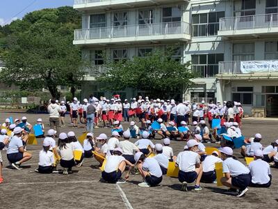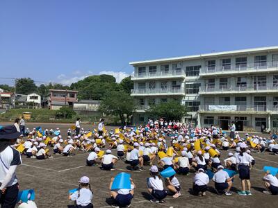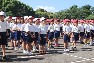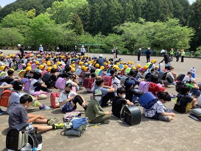 授業参観後に、引き渡し訓練が行われました。校内放送を聞いた子どもたちは、荷物を持って静かに落ち着いて校庭に避難ができました。引き渡し訓練へのご協力、ありがとうございました。