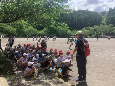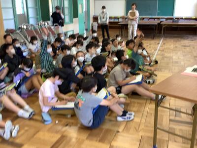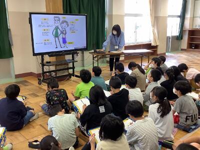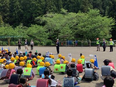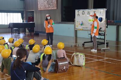 1年生が防犯教室を行いました。「いかのおすし」の約束を指導員の皆様から教えていただき、しっかりと反応しながらお話を聞くことができました。助けをもとめる方法や防犯ブザーの使い方など、たくさんのことを学習することができました。
