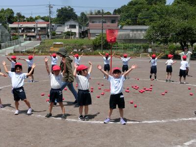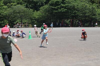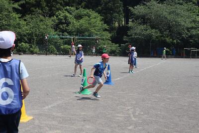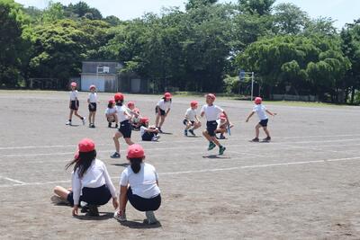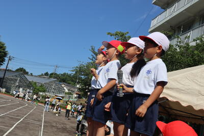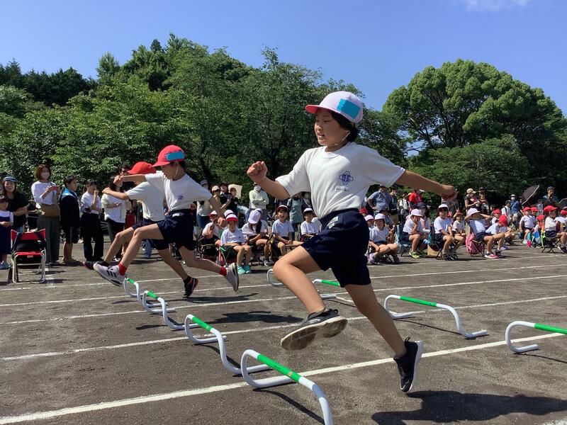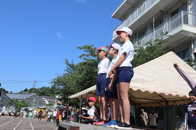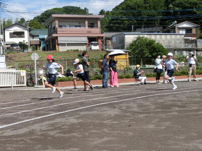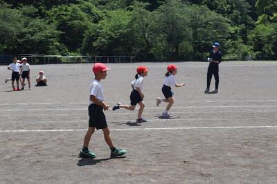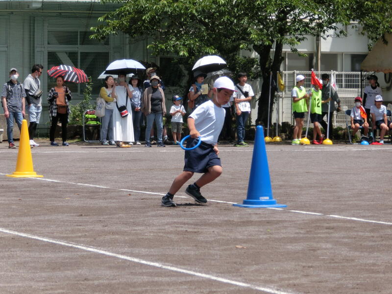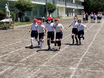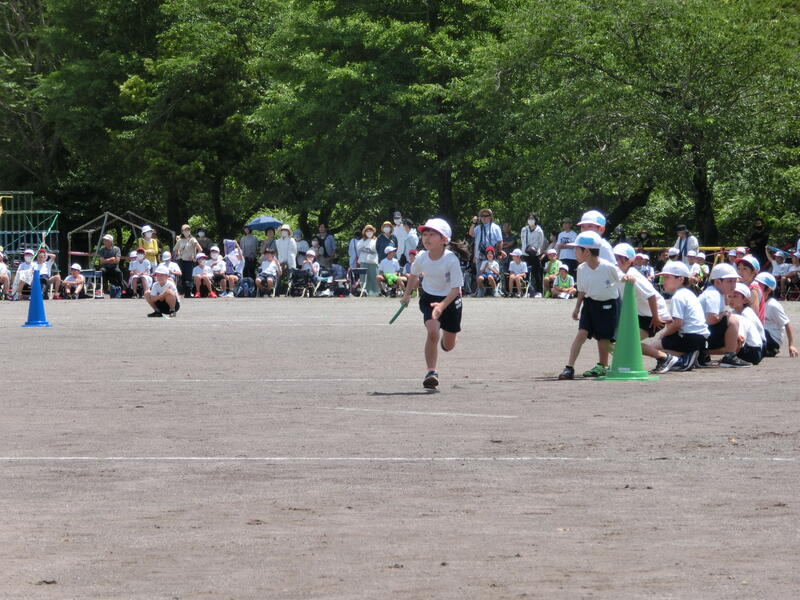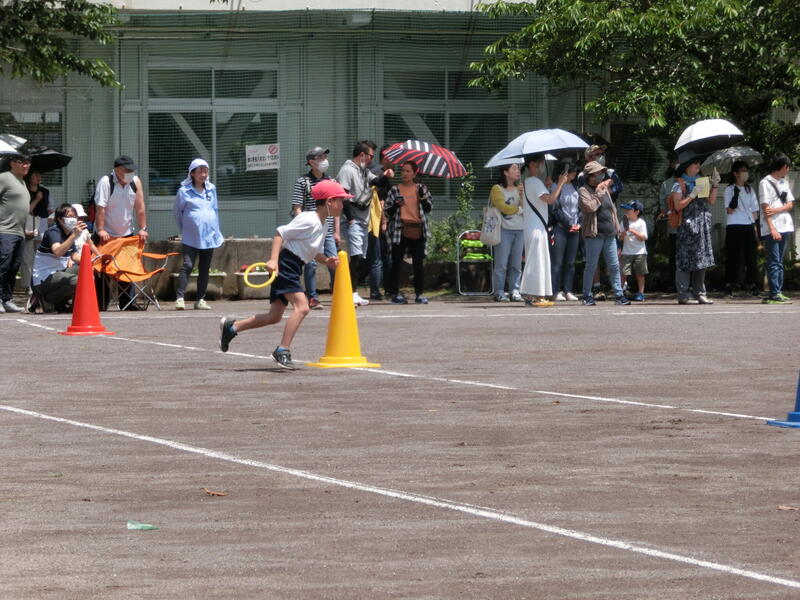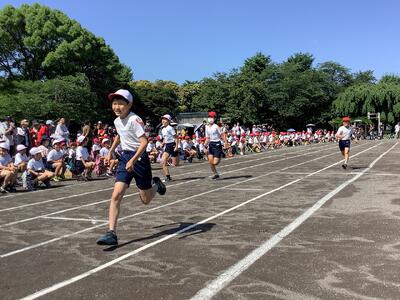 ラジオ体操後の徒競走「やってみよう!Let's run 120m!」では、120m走という長い距離でしたが、最後まで走りきる姿がとてもかっこよかったです。