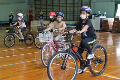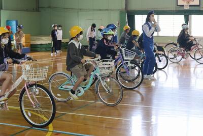 4年生が、自転車の乗り方教室を行いました。ヘルメットをしっかりかぶり、安全確認をしながら、走行する練習をしました。自分の命を守り、自転車の安全な走行の仕方を体験することができました。