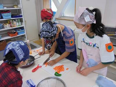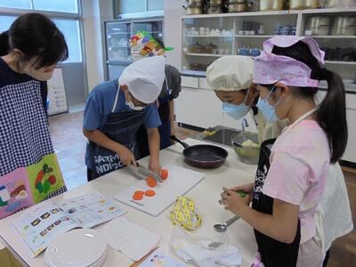 家庭科の調理実習で、野菜炒めを作りました。野菜を慎重に切ったり、火加減に気を付けて炒めたり、お皿に盛り付けたりと、班の中間と協力し、どの子も真剣に取り組んでいました。
