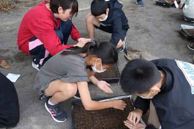 今日の6時間目は、委員会活動でした。5,6年生が、学校のために頑張って活動してくれています。園芸委員会は、種まきをしました。小さな種を丁寧に蒔いていきます。