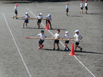 団体競技「一致団結!心をそろえてLet'sTry!」では、二人三脚とボール運び、どちらのグループも練習以上の力を発揮して、取り組むことができました。