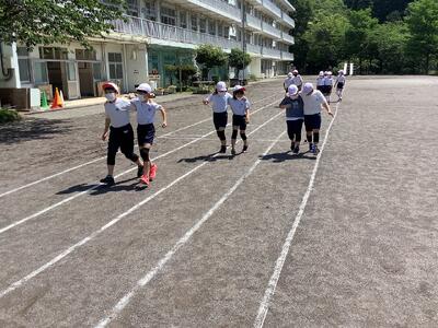 昼休みには、子供たちが、運動会に向けて、友達と力を合わせて練習に取り組んでいます。お互いに声を掛け合って、頑張る姿は輝いています。これからも本番に向けて熱中症に気をつけながら励ましていきたいと思います。