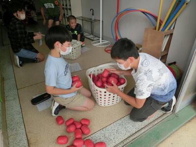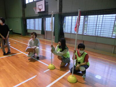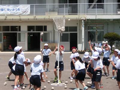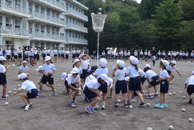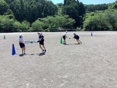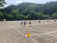 運動会が来週に迫り、どの学年も練習に力が入っています。4年生は、変化走の練習をがんばっていました。最後のシュートを1発で決められるかどうかが、勝負の鍵となりそうです。
