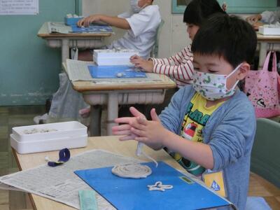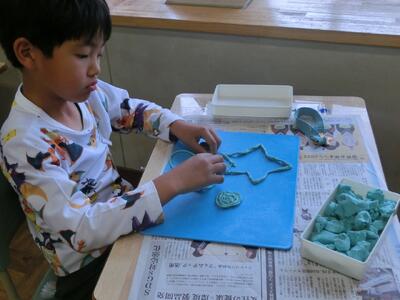 粘土をひも状にした後、いろいろな形を作って楽しみました。