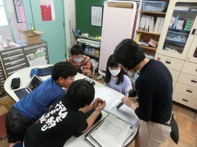 グループで口々に話し、交流しながらお手本通りの作図に挑戦しました。また、全体の場でやり方を紹介してくれた友達がいました。とても手際が良く、見ている友達も自分の手順と比べながら、作図の仕方を確認することができました。