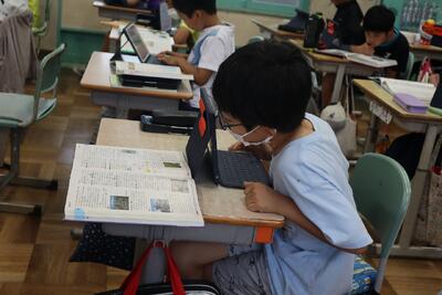 4年生の国語の授業では、百科事典をつかって、自分の課題に取り組んでいます。資料から必要な内容を読み取り、要点をまとめていきます。