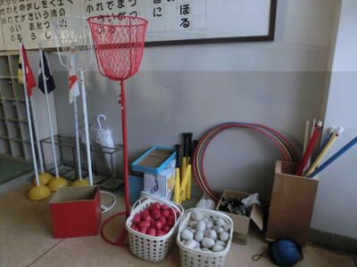 外は大雨!!5,6年生が、できる範囲で運動会の準備をしてくれました。