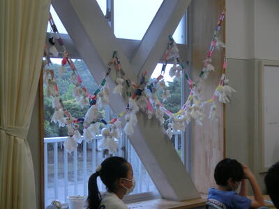 6年生の教室には、たくさんのてるてるぼうずが飾られていました。