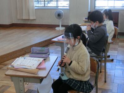 「パフ」という曲をリコーダーで演奏しています。低い「ド」や「レ」の音も、きれいに出せるようになってきました。