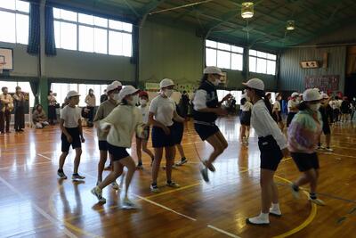 ダンスの後は、ソフトバレーボールを1組対2組のクラス対抗で行いました。チームメートでお互いに声を掛け合ったり、自分から積極的にプレーに関わったりする姿勢がとても素晴らしかったです。ラリーの応酬があると、審判役の子供たちも自分たちがプレーをしているかのように、応援にもより力が入りました。