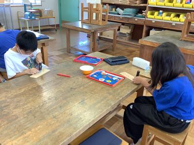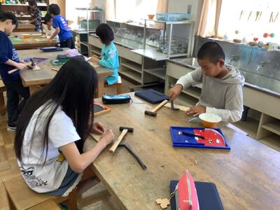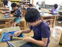 今日は釘打ちです。ビー玉の動きを確認しながら、丁寧に釘を打っていました。どんな作品が完成するのか今から楽しみです。