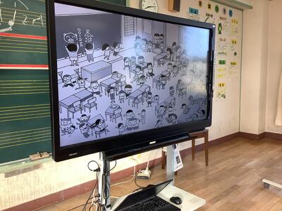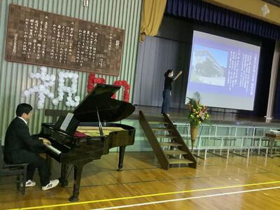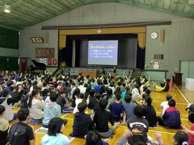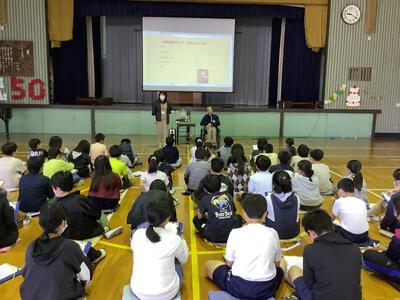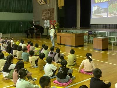計画委員会による「沢地小50年の歩み」の紹介が行われました。途中途中にクイズもあり、子供たちは盛り上がりながら沢地小の歴史を振り返りました。