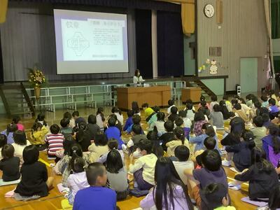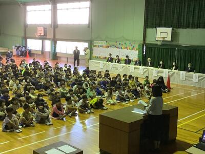 「失敗してもいい!大きな声ではっきり伝えることに挑戦していこう!」とアドバイスをもらうと、どの子供たちも、そのことを目標に堂々と話すことができました。頑張っている友達に拍手を送る子供達も大変素敵でした。校長先生も挑戦したところ、「やっぱすごい!」「あんな風に話してみたい!」と子供たちからも称賛の嵐でした。