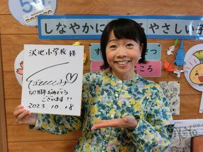 校長室に戻った後、沢地小の子供たちのために、サインを書いてくれました。