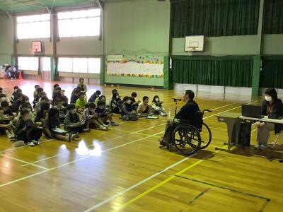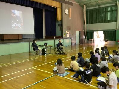 5年生の総合的な学習の時間の様子です。福祉に関する学習として、三島市で車椅子での生活をされている方を講師としてお招きし、その生活についてお話を聞きました。「障害は見た目ではわからないこと」や「車椅子での移動の大変さ」などの実生活からの話以外にも、子供たちからの質問にも、丁寧にこたえてくださいました。お忙しい中、ありがとうございました。