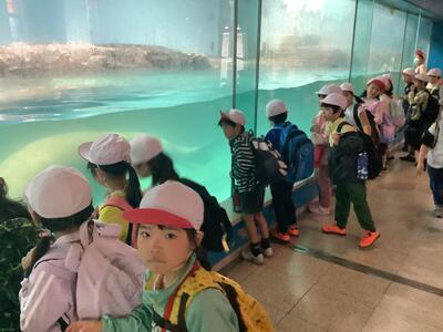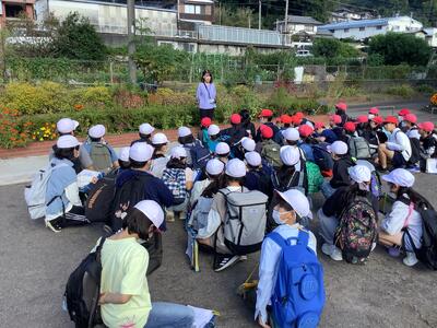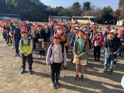 今日は、1,2年と3,4年のペア遠足です。秋晴れの素晴らしいお天気で、子供たち笑顔で出発です。5,6年生に「いってらっしゃい」と見送られ、「いってきます」と元気に手を振る1,2年生と3,4年生です。すてきな1日になりますように。