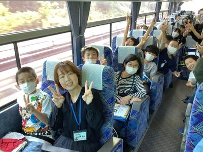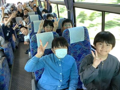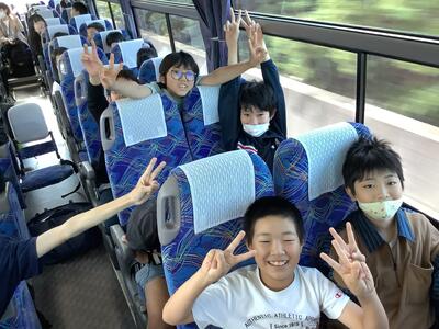 5年生が社会科見学に向けて、沢地小学校を出発しました。