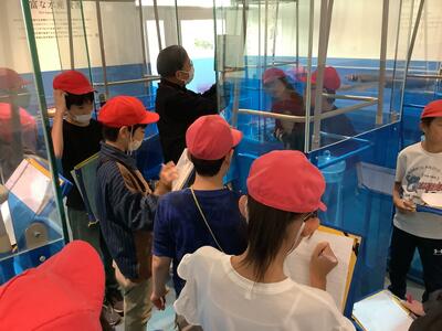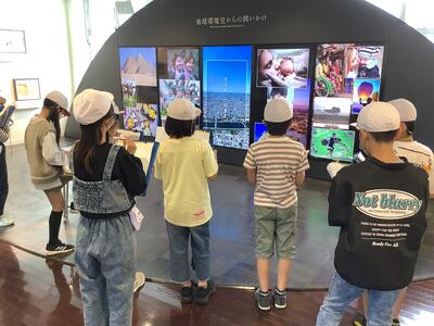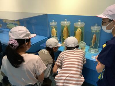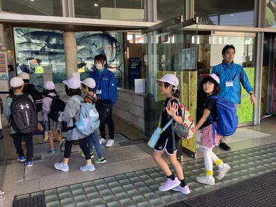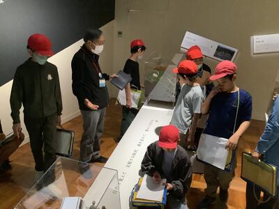 2年生が上手にリードしながら、ペアで仲良く館内を見学しています。