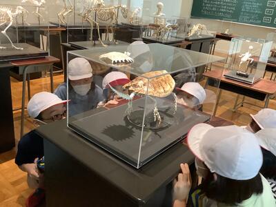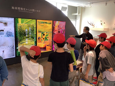 最初の見学施設である「ふじのくに地球環境史ミュージアム」につきました。様々な展示品を見たり、ガイドさんの話を聞いたりしながら、自然の歴史、これからの自然について考えています。