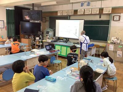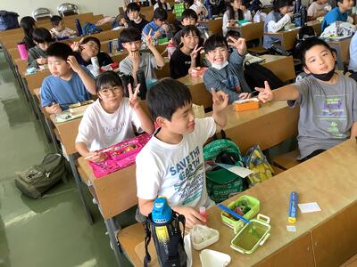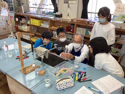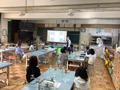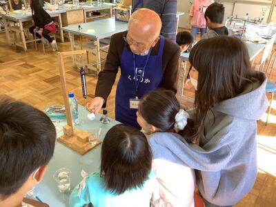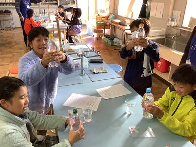 4年生の理科の時間に、くらりか静岡の皆さまによる、出前授業が行われました。水の入ったペットボトルを押したり、離したりすることで、中にあるものが浮いたり沈んだりする、圧力と浮力の関係を利用したおもちゃ「浮沈子(ふちんし)」について、教えていただき、実際に浮沈子を作って、さまざまな実験を行いました。