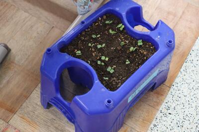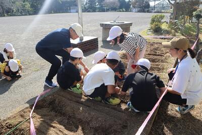 2年生の生活科の授業では、子供たちが自分の植木鉢に二十日大根の種を蒔きました。今日は、芽が出てきた二十日大根の観察をして、絵を描いたり、気が付いたことを自分の言葉で表現したりしました。授業の最初には、外の畑に小松菜の種を植えました。「たねが黒ごまみたい。」と言いながら、丁寧に土の上に種を蒔いていきました。成長が楽しみですね。