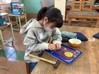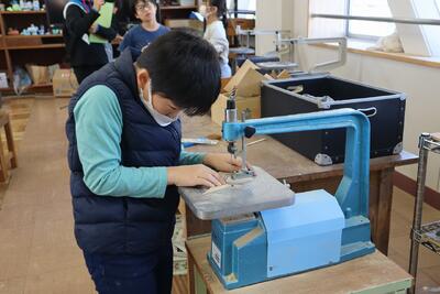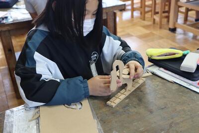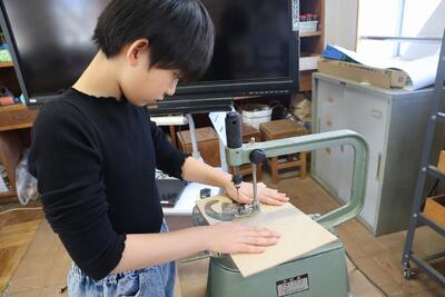 5年生の図工の授業では、電動糸のこを使って、作品作りに挑戦しています