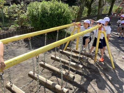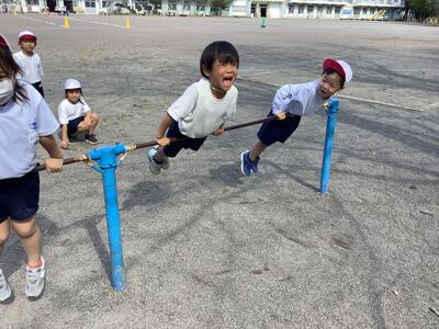 体育の時間に、遊具を使って運動をしました。涼しくなってきたので、気持ち良く体を動かすことができました。