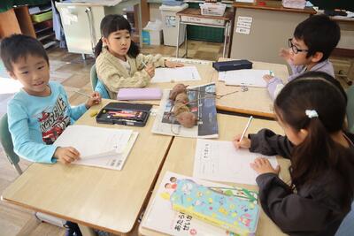 1,2年生が、ペアの顔合わせを行いました。お互いに自己紹介をして、楽しい時間を過ごしました。明日は、子供たちが楽しみにしているペア遠足です。