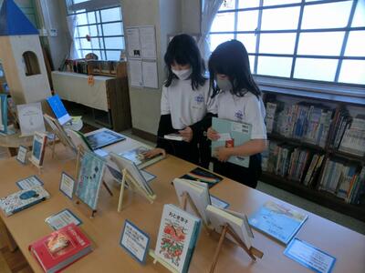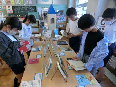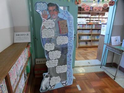 三島市出身の詩人「大岡 信(まこと)」さんの関連作品を集めた展示会が図書室で始まりました。図書室には興味をもった児童がたくさん集まっていました。