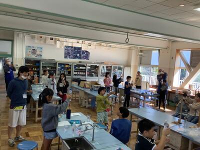 元気に出発した3・4年生、富士川楽座に到着し、まずはワークショップの時間です。