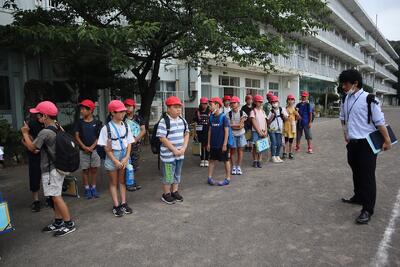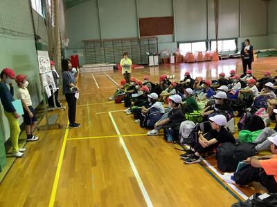 出発式の様子です。いよいよ自然教室が始まります。