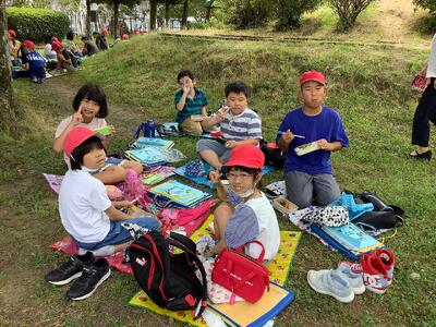 長伏公園でお弁当を食べ、次の出発時間までみんなで楽しく遊びました。