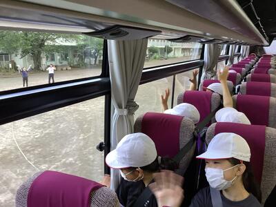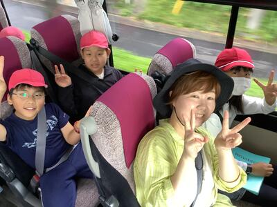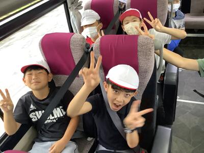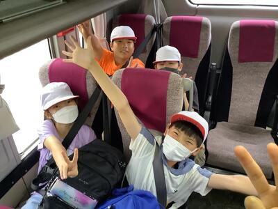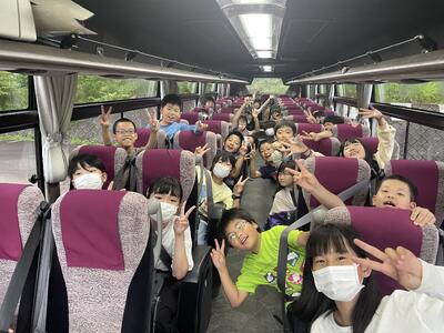 バスの中でもまだまだ元気いっぱいの5年生です。
