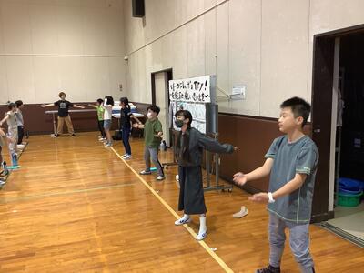 キャンプファイヤーで披露するスタンツの練習です♩