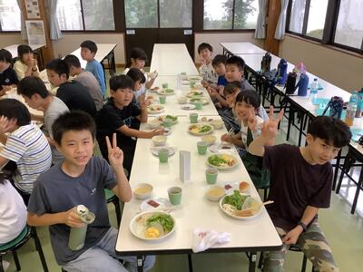 朝食をしっかりと食べ、水筒の中身も入れ替え、元気に2日目の活動に取り組んでいます。