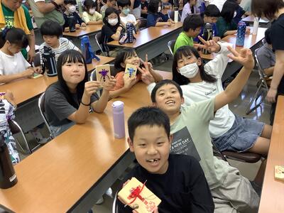 清掃が終わると、クラフト作りとプラネタリウムの時間がありました。クラフトで作ったひもトンボ、大切にしてくださいね。プラネタリウムも幻想的でした。今はお弁当を食べ終え、これから退所式です。