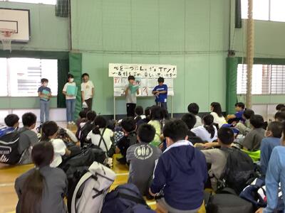 交通安全リーダーと語る会(一年生へ発表)