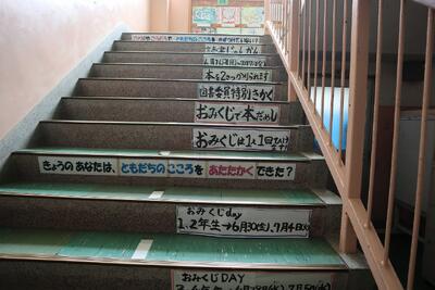 今週も読書旬間です。休み時間になると、図書室に子供たちがたくさん集まります。図書委員の5,6年生も一生懸命仕事を進めています。おみくじを引いて、新しい本と出会ったり、たくさん本を借りてスタンプを集め、しおりをもらったり、子供たちの笑顔が広がっています。
