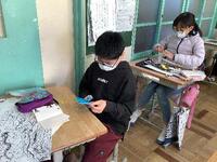 5・6時間目の時間を使って、2クラス合同で書き初めの練習を行いました。4年生の字は「明るい声」です。お手本のように書こうと集中して取り組みました。