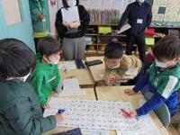 沢地幼稚園の年長さんが、1年生の授業の様子や給食の配膳の様子を見にきました。給食の前に、1年生が小学校生活についていくつか教えてあげていました。話を聞いて、年長さんも入学への不安が減り、楽しみな気持ちが膨らんだのではないかと思います。