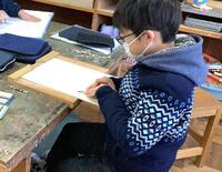 4年生は、図工の学習で初めて彫刻刀を使っています。最初は恐る恐る使っていましたが、慣れてくると、「(彫るときに)いい音がするようになった」「すーっと長く彫れた」など、喜びの声が挙がるようになりました。