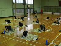 6年生の書き初めの文字は「出発の春」です。この日は体育館で練習をしました。子供たちは、いつもよりも「太く書く」ことを意識して、一生懸命練習に励んでいました。授業の最後には、みんなで記念撮影をしました。
