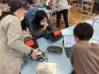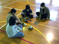 6年生の理科「電気とわたしたちのくらし」の授業において、タブレット内にある「EV3クラスルーム」というプログラミングアプリを使い、レゴブロックで作られたロボットを動かす活動を行いました。「?ロボットを直進させよう」という課題に対し、どのように指示を組み合わせれば、ロボットが指示通りに動くかをグループで考え実践し、「?障害物の手前でロボットを止めよう」、「?ロボットを正方形に走らせよう」など、徐々に難しい課題に取り組み、最後は音を出しながらロボットを円状に走らせるグループもありました。