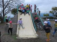 今日は、光ヶ丘方面へ学区探検に行きました。光ヶ丘までつづくがんばり坂を登り、商店街を歩き、最後に光ヶ丘中央公園で遊びました。初めてがんばり坂を登る子は、とても長い坂道に驚いている様子でしたが、みんな軽々と坂道を登り切っていて、成長を感じました。