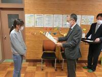 三島間税会の方々が来校され、校長室で「税の標語コンクール・ポスターコンクール」の表彰式が行われました。6年生2名が優秀な賞に輝き、賞状と景品が手渡されました。